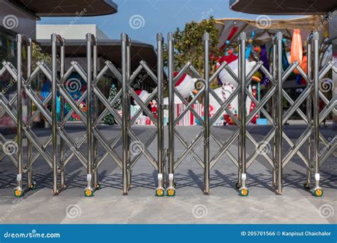 Folding Retractable Fence on Casters. Barrier on Casters. Sliding Gates from www.dreamstime.com