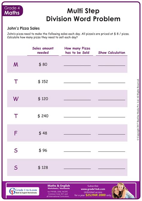 MultiStep Division Word Problem Math Worksheets SplashLearn