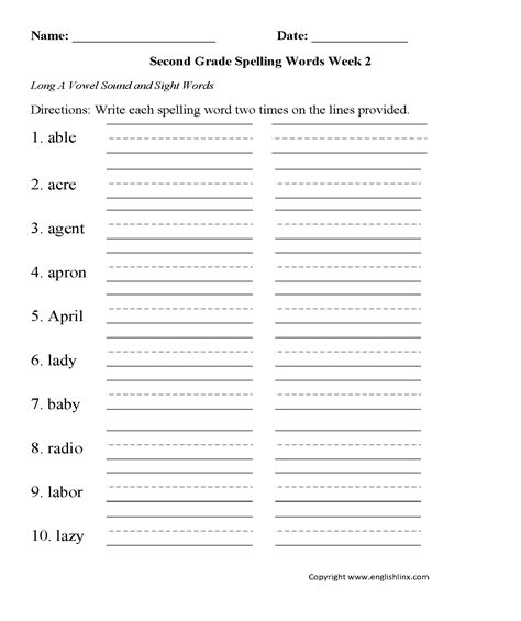 Second Grade Spelling Words Worksheets from learningschoolosmogw2.z4.web.core.windows.net