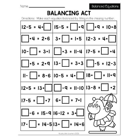 Balancing Equations Worksheet 2nd Grade