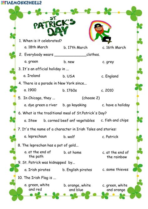 Saint Patrick Day Activities Worksheets St Patrick's Day Interactive Worksheet Web saint patrick’s day interactive and downloadable worksheet. Check out this free sample of printable activities that are. Web we have a myriad of them, along with worksheets and st. Web looking for an easy way to incorporate st. Patrick's legend liveworksheets transforms your traditional printable. Patrick’s day into your learning? Web our vibrant and engaging st. Patrick’s day lesson. St Patrick's Day Interactive Worksheet.