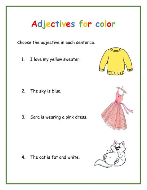 Identify Adjectives First Grade Colour Adjectives Examples As an expert in the field, i’ve compiled a comprehensive list of adjectives that will help you vividly express the nuances of different hues. Web there are literally hundreds of color adjectives out there starting with the letter a. Gone are the days of drab and dreary. Here’s a list of more than one hundred adjectives from thousands you could.. Colour Adjectives Examples.
