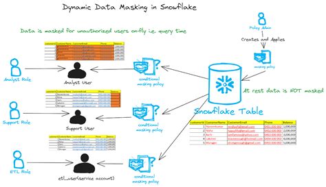 Snowflake Data Masking Snowflake Solutions Snowflake Data Masking Example Web this topic provides instructions on how to configure and use dynamic data masking in snowflake. Web to implement dynamic data masking, you create a masking policy that applies a mask to the data — for example, a string of asterisks ‘*****’— based. Web let's see how it is designed in snowflake. In snowflake, dynamic data masking is applied by. Snowflake Data Masking Example.