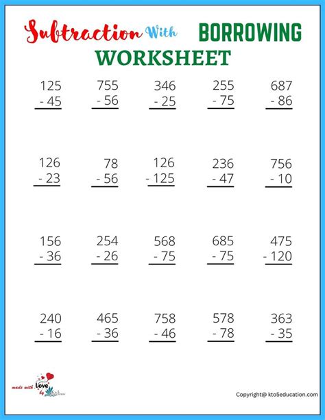 Subtraction With Borrowing Worksheets Download Free Printables For Kids