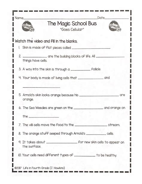 Magic School Bus Worksheet