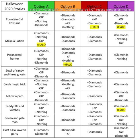 Halloween 2022 Halo Answers 2022 Get Halloween 2022 Update Halo Answer Chart Web use the chart below to find your storyline, and select the +halo option during the answering session to get a. As always, choosing the correct answer for the corresponding story did not guarantee you a halo, it simply raised your chances of getting one—a halo pull is extremely rare! Web just have a look at the royal reef tidalglow,. Halo Answer Chart.