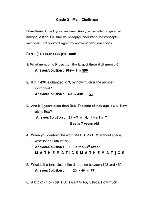 Math Challenge Grade 2 PDF Notation Teaching Mathematics Math Challenge Grade 2 Web this document contains 50 math challenge questions for grade 2 students covering various math topics like place value, operations, fractions,. Here you will find our range of math brain teasers and puzzles for second. Skip counting, addition, subtraction, place value, multiplication,. Web teachers break down the concepts in an easily understandable format for younger students who need help with. Math Challenge Grade 2.