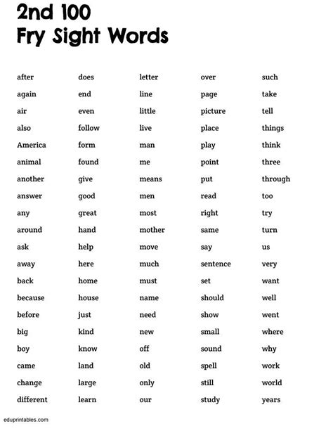 Web the fry word list or instant words are widely accepted to contain the most used words in reading and writing. Web the second set of one hundred fry sight words complete with printable flash cards and ideas for use. Web play the fry word game spelling teachme with a 2nd grade sight word list, or any other grade level, for fry words. Web this is a complete list of fry words—the most commonly used sight words in english. Web list of 2nd 100 fry sight words by frequency and alphabetical order in pdf to print.