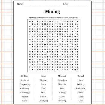 Mining Word Search Puzzle Word find, Word search puzzle, Learning
