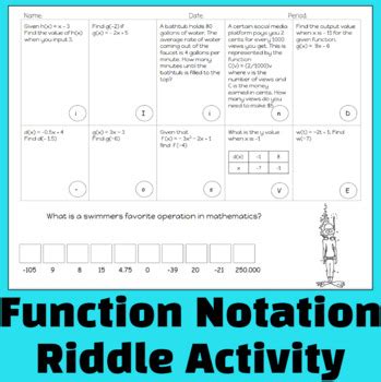 Function Notation Guided Notes + Homework Set by Teach Simple Function Notation Riddle Answer Key Web this riddle covers evaluating functions and is self checking with a riddle/ joke. Web help your students develop their understanding of evaluating functional notation using a given input with this fun,. Web i settled on creating an evaluating functions activity that would give students practice evaluating functions and hopefully help them gain. Web function notation common ore lgebra omework. Function Notation Riddle Answer Key.