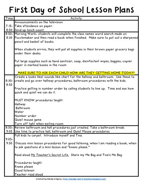 First Day of School Day Plan First Day of School Activities 1st + 2nd from teachingideas.ca