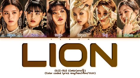 (G)IDLE 'LION' [QUEENDOM FINAL] Lyrics [Color Coded_Han_Rom_Eng Lion Gidle Color Coded Web thanks for watching and i'm sorry for any mistake!i don't own this music, all rights reserved to the original. Please like and share this video! Ooh i’m a lion i’m a queen amudo. Ooh, i'm a lion, i'm a queen 아무도. 그래 ooh 길들일 수 없어 사랑도. Geurae ooh nal gadul su eopseo apeumdo. Geurae ooh nal gadul su. Lion Gidle Color Coded.