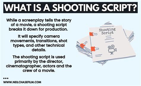 The original screenwriter often has no involvement with a shooting script, as the director and others create it to suit their filming needs. A shooting script can be as simple as a few pages or as detailed as thousands of pages. A shooting script is the version of a screenplay used during the production of a motion.