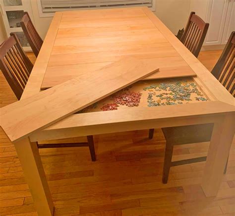 Find and save ideas about dining room table hidden puzzle on pinterest. Bring your entertaining to the next level with an affordable, beautiful, solid wood table that can hide your puzzles and games below the dinning surface. The forest stewardship council (fsc).