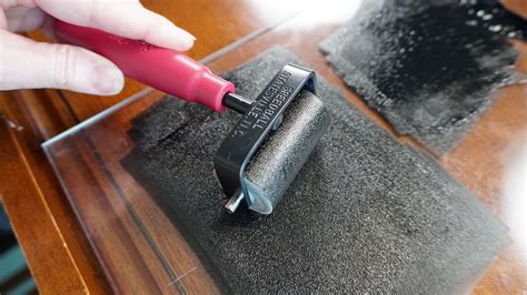 One of the key tools for lino printing are the rollers and brayers, they are used to roll ink ink onto your lino printing plate to enable you to print. Once the ink is completely dry, use an iron to permanently set the design and clean up for the best results. You then pick up a small line of ink on the roller by dipping it into the line of ink. Use a glass or smooth acrylic plate and roll the brayer back and forth in multiple directions until the ink forms a very thin, even layer.