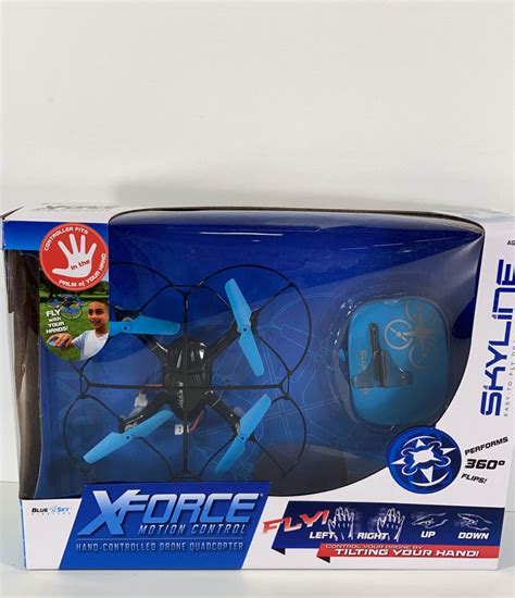 X-Force Hand Motion-Controlled Drone - Description new in the box skline xforce motion control hand controlled drone quadcopter. Control your drone with just a wave and tilt of your hand and watch. Control your drone with just a movement of your hand. Be amazed with the new blue sky wireless xforce motion control drone quadcopter! With just a wave and a tilt of the hand,.