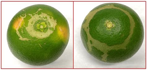 Citrus Thrips Damage - In citrus, thrips can injure the developing flowers or fruit. Feeding damage to fruit is recognisable as a ring of brownish tissue or ‘halo’ at the stem end,. The risk of attack by thrips is higher on the fruits located on the outside of the canopy, where they are also susceptible to wind damage and sunburn. Learn more about the.