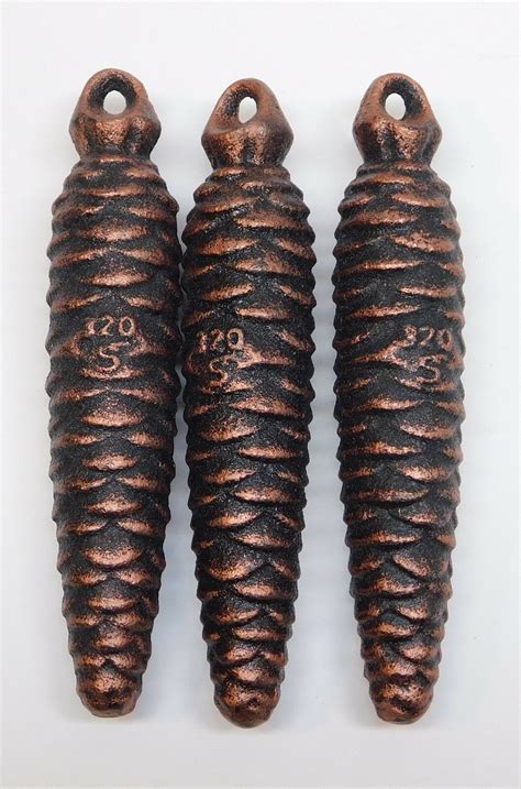 Cuckoo Clock Weights Weight - Designed for use in mechanical cuckoo clocks, these weights are sold individually and available in a wide range of sizes to suit various clock models and movement requirements. 5 1/8 long x 1 1/16 wide. Weights have wire hook style. Cuckoo clock weights cast iron 'fir cone' style. Each weight weighs 320 gram (11.3 ounce).