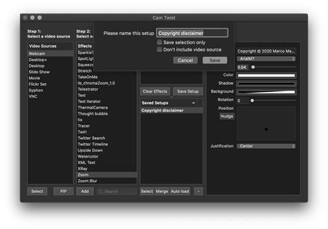 Display copyright disclaimer on your webcam using CamTwist Marco
