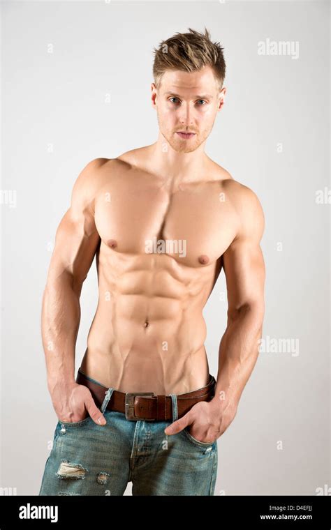 Time to work those pecs. A handsome young man doing weight training at from www.alamy.com