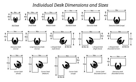 Single Desk Dimensions - Use this quick reference to find the right fit for your space. Here are the standard dimensions for common desk types, including sitting desks, standing desks, writing desks, and executive desks. Find the ideal desk dimensions for peak comfort and productivity with our guide to standard desk measurements and ergonomics. Complete guide to office desk dimensions & standing desk heights..