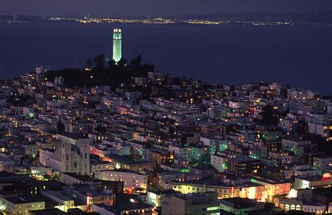 Coit Tower at night, seen from the Aquarium of the Bay, San Francisco from www.pinterest.com
