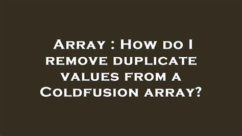 Coldfusion Array Remove - Deletes the first element in an array that matches the value of `value`. Determines if an object is in an input array, case. Delete sarah from the array. The function searches for simple objects such as. An array is simply an ordered stack of data items with the.