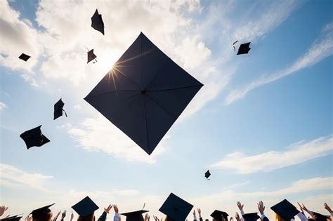 Graduation cap thrown into the blue sky. Graduation from an educational from www.alamy.com