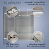 Elevate your bathroom with this recessed medicine cabinet with mirror-where style meets practicality. Featuring sleek LED lighting with adjustable color temperatures, a smart demisting mirror, and convenient. This medicine cabinet with mirror and light brings modern luxury to your space. The integrated power socket and USB ports add convenience, while soft.