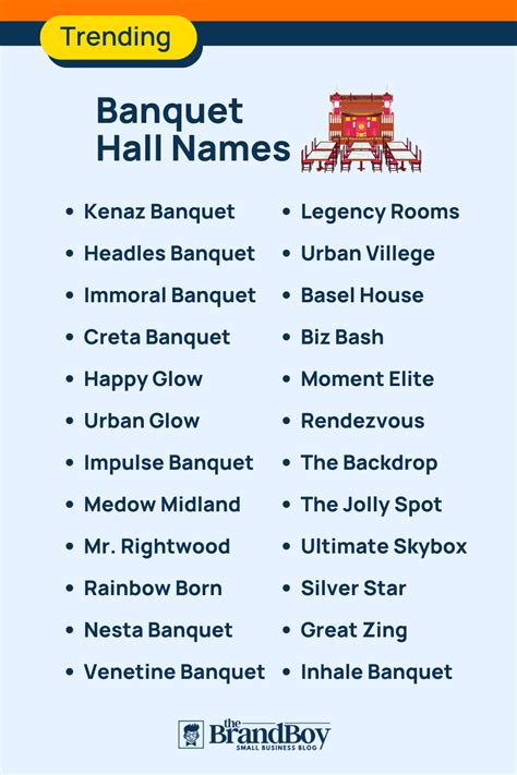 Dining Hall Name Ideas - Explore a plethora of captivating and unique banquet hall name ideas that will leave a lasting impression on your guests. Instead of brainstorming for hours, the banquet hall name generator provides instant suggestions. From elegant and sophisticated to fun and whimsical, these name ideas will inspire you to choose the perfect moniker for your hall. This allows you to focus.