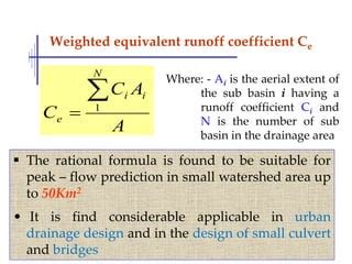 Weighted Runoff Coefficient Calculator . Free online stormwater runoff calculator to estimate peak flow and runoff volume from rainfall using rational and scs methods. \ ( i \) is the rainfall intensity in mm/hour for the design return period and for a duration equal to the “time of concentration”.