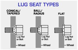 Lug Seat Types - Complete guide to wheel hardware: This type of lug nut is commonly used when putting new, aluminum wheels on older vehicles that came with shorter wheel studs. Ensure the thread size and pitch are correct for your wheel studs. Seat types — conical, ball, flat and mag wheels can use a spherical (also referred to as a “ball seat), tapered.