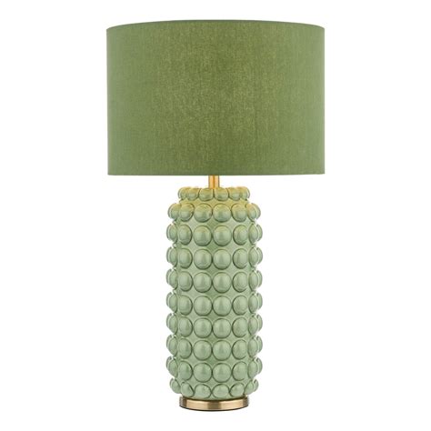 Dar Lighting Etzel Green Ceramic Table Lamp With Green Linen Shade from www.dusklights.co.uk
