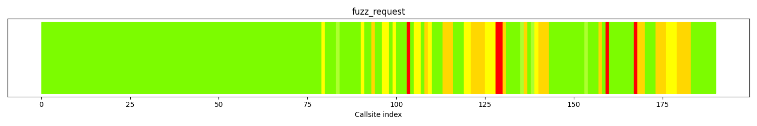 The calltree shows the control flow of the fuzzer. This is overlaid with coverage information to display how much of the potential code a fuzzer can reach is in fact covered at runtime. In the following there is a link to a detailed calltree visualisation as well as a bitmap showing a high-level view of the calltree. For further information about these topics please see the glossary for full calltree and calltree overview