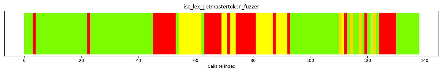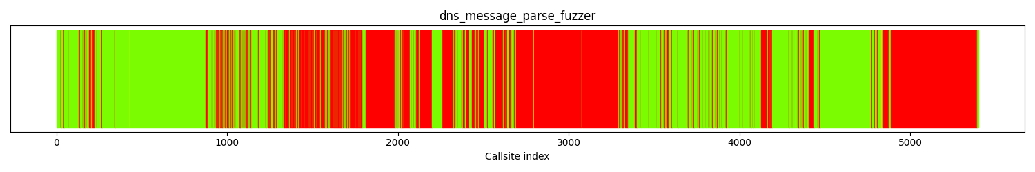 The calltree shows the control flow of the fuzzer. This is overlaid with coverage information to display how much of the potential code a fuzzer can reach is in fact covered at runtime. In the following there is a link to a detailed calltree visualisation as well as a bitmap showing a high-level view of the calltree. For further information about these topics please see the glossary for full calltree and calltree overview