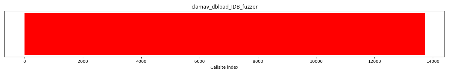 The calltree shows the control flow of the fuzzer. This is overlaid with coverage information to display how much of the potential code a fuzzer can reach is in fact covered at runtime. In the following there is a link to a detailed calltree visualisation as well as a bitmap showing a high-level view of the calltree. For further information about these topics please see the glossary for full calltree and calltree overview