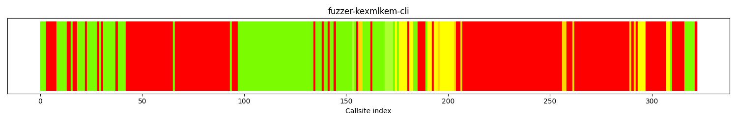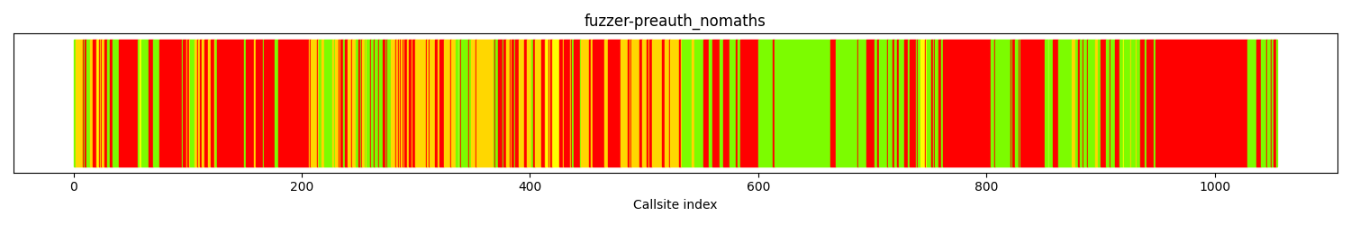 The calltree shows the control flow of the fuzzer. This is overlaid with coverage information to display how much of the potential code a fuzzer can reach is in fact covered at runtime. In the following there is a link to a detailed calltree visualisation as well as a bitmap showing a high-level view of the calltree. For further information about these topics please see the glossary for full calltree and calltree overview