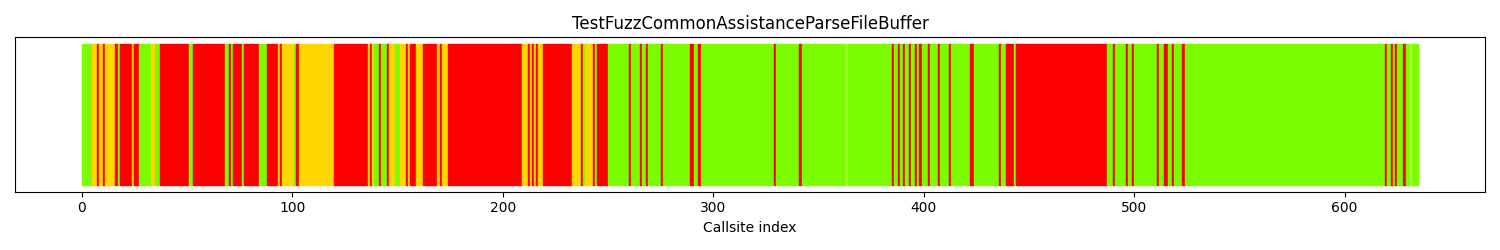 The calltree shows the control flow of the fuzzer. This is overlaid with coverage information to display how much of the potential code a fuzzer can reach is in fact covered at runtime. In the following there is a link to a detailed calltree visualisation as well as a bitmap showing a high-level view of the calltree. For further information about these topics please see the glossary for full calltree and calltree overview