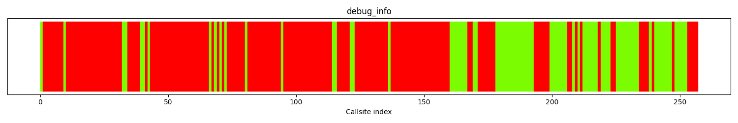 The distribution of callsites in terms of coloring is