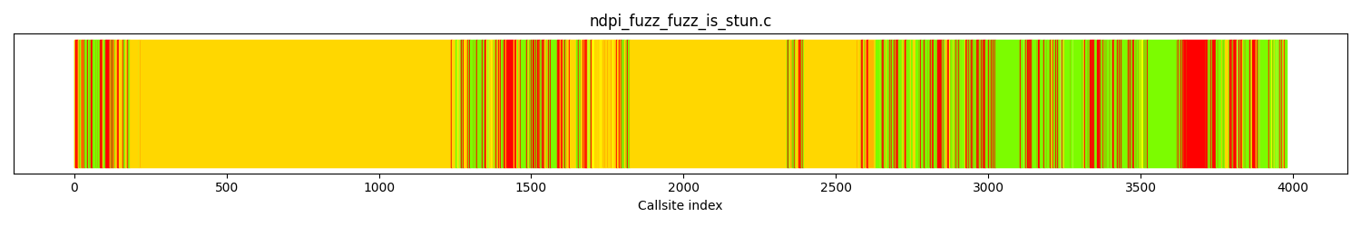 This section shows a list of 3rd party function calls and their relative coverage information. By static analysis of the target project code, all of the 3rd party function call and their caller information, including the source file and line number that initiate the call are captured. The caller source code file and line number are shown in column 2 while column 1 is the function name of the 3rd party function call. Each occurrent of the 3rd party function call will occuply a separate row. Column 3 of each row indicate if the 3rd party call in the source file line is unreachable. Column 4 lists all fuzzers that have covered that particular system call in that specific location (source file and line)during their dynamic fuzzing.