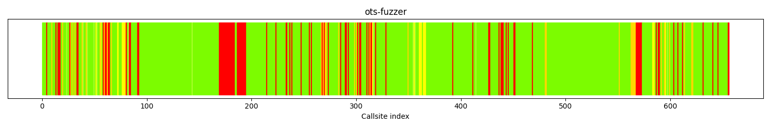 The calltree shows the control flow of the fuzzer. This is overlaid with coverage information to display how much of the potential code a fuzzer can reach is in fact covered at runtime. In the following there is a link to a detailed calltree visualisation as well as a bitmap showing a high-level view of the calltree. For further information about these topics please see the glossary for full calltree and calltree overview