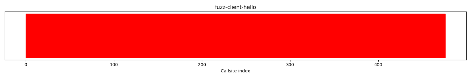 The calltree shows the control flow of the fuzzer. This is overlaid with coverage information to display how much of the potential code a fuzzer can reach is in fact covered at runtime. In the following there is a link to a detailed calltree visualisation as well as a bitmap showing a high-level view of the calltree. For further information about these topics please see the glossary for full calltree and calltree overview