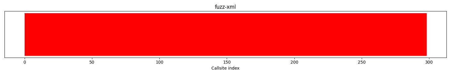 The calltree shows the control flow of the fuzzer. This is overlaid with coverage information to display how much of the potential code a fuzzer can reach is in fact covered at runtime. In the following there is a link to a detailed calltree visualisation as well as a bitmap showing a high-level view of the calltree. For further information about these topics please see the glossary for full calltree and calltree overview