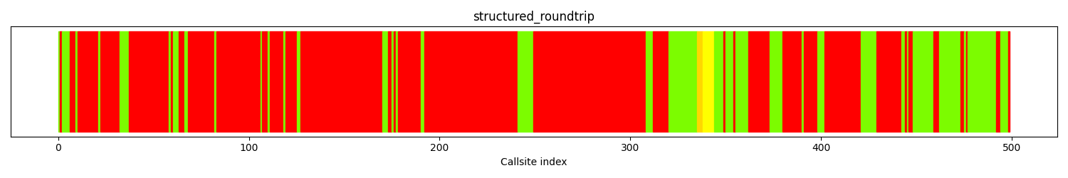 The distribution of callsites in terms of coloring is