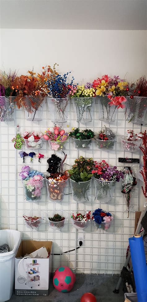 Flower Storage and Organization in my Craft Room, Organizing my Flowers Floral Organization Ideas Discover ideas for storage solutions needed for floral arrangements work. How to organize silk flowers in a wreath workshop with this budget friendly diy artificial flower storage idea. Display up to nine different bouquets at a time to showcase your wide variety of floral offerings. Must have floral wall storage for any wreath. Now you can see them and access. Floral Organization Ideas.