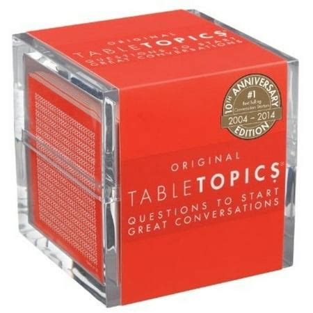 20 years of great conversations: Tabletopics® original, first published in 2004, remains our most popular conversation starter card set. Tabletopics® original, first published in 2004, remains our. Questions to start great conversations, the best way to spark a new conversation & create new. Tabletopics® are fun conversation starters for any and every occasion. Learn more about the people you love and never have a dull moment, with the tabletopics original edition that started it all! Tabletopics® 20th anniversary limited edition the original conversation starters this special edition of tabletopics® original has been.