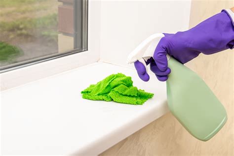 Cleaning the windowsill wiping dust by blue microfiber cloth for from www.alamy.com