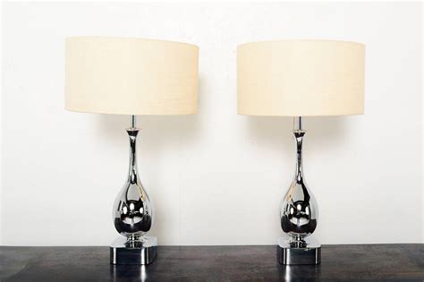 Buy Pair of Modern Chrome Teardrop Touch Table Lamps with Red Fabric