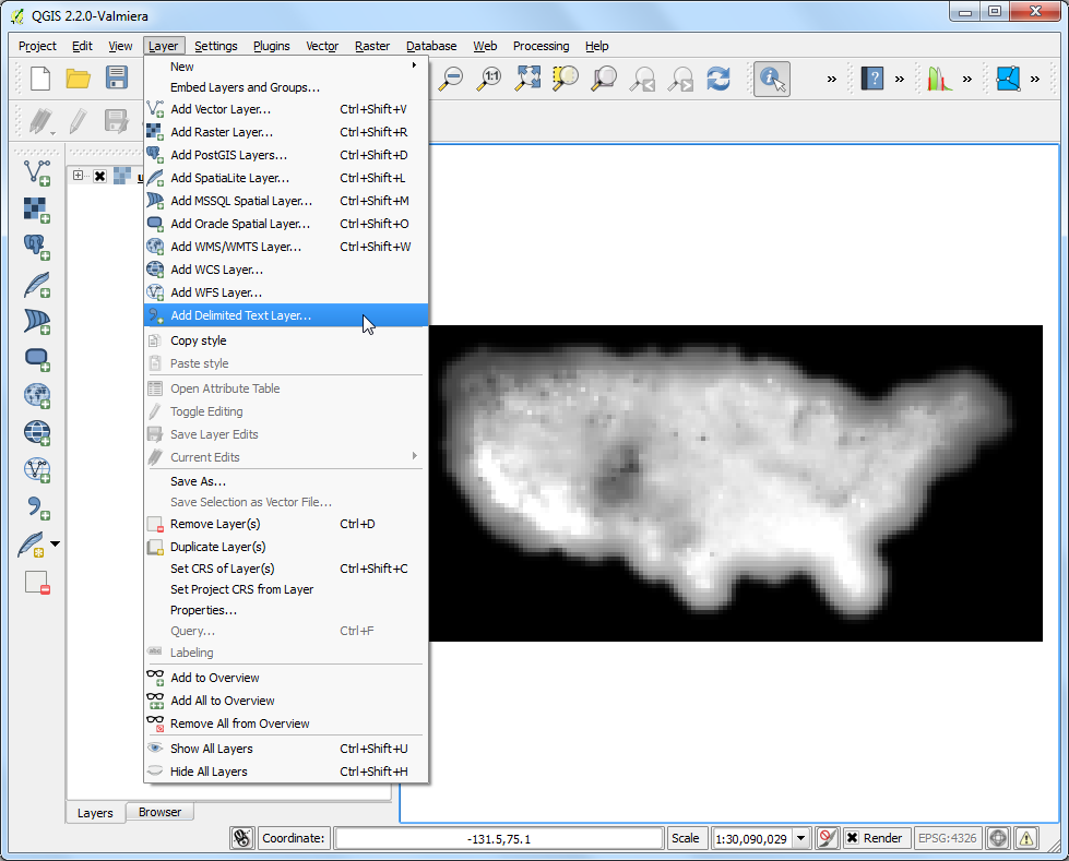 In the Create a Layer from Delimited Text File dialog, click Browse and open