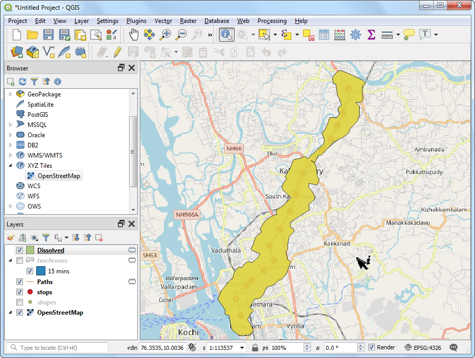 We will use metro rail station data for Kochi, India to determine areas that are within 15-minutes of walking distance.